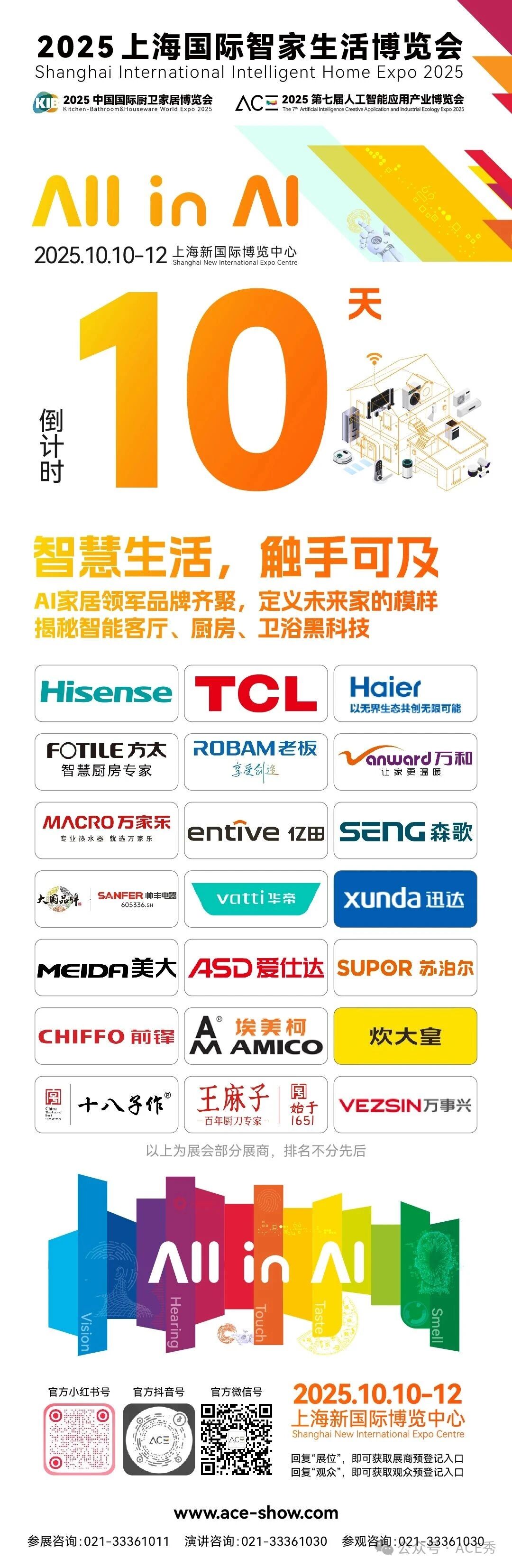 2025上海国际智家生活博览会将于10月10日至12日在上海新国际博览中心隆重举办。本届展会由ACE2025第七届人工智能应用产业博览会与KIB2025中国国际厨卫家居博览会强强联合打造,以“All in AI”为主题,首次系...
