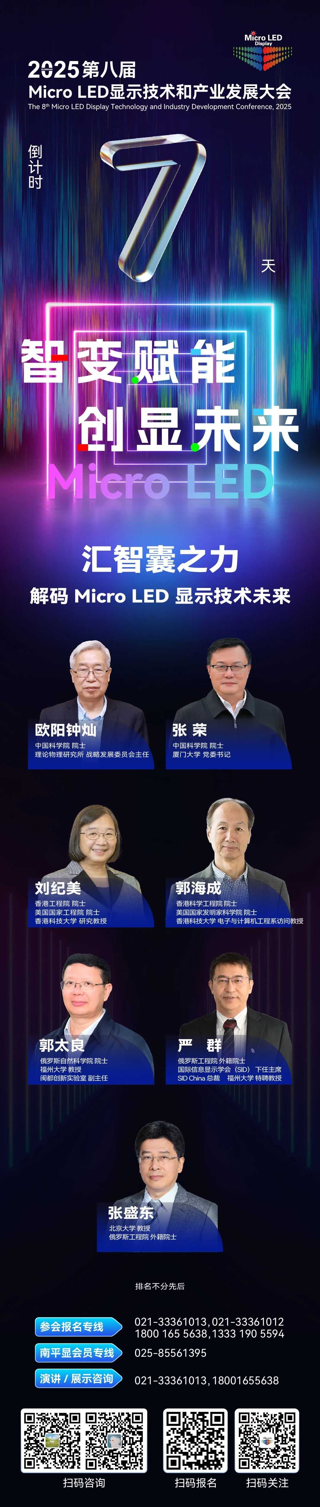 倒计时7天!七位院士,点亮昆山,2025第八届Micro LED显示技术和产业发展大会即将开幕