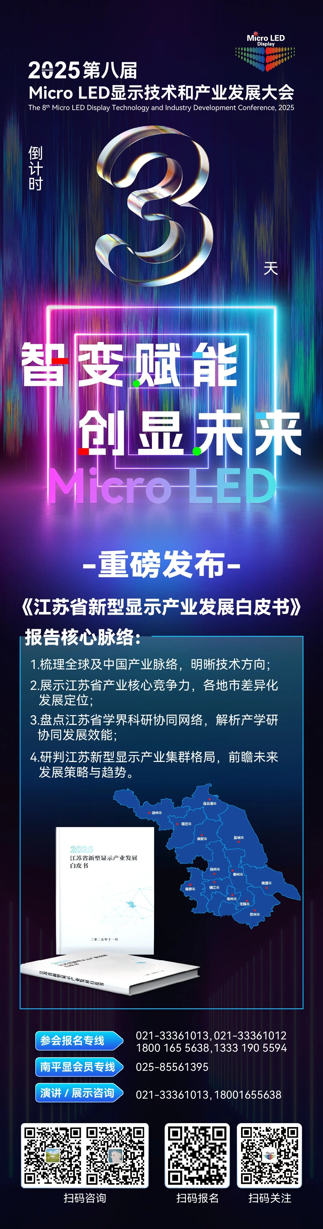 咨询:021-33361013,021-33361012, 18001655638(同微信),13331905594(同微信) 作为 Micro LED 显示领域年度核心盛会,2025第八届Micro LED显示技术和产业发展大会将于2025年11月5日至7日在苏州....