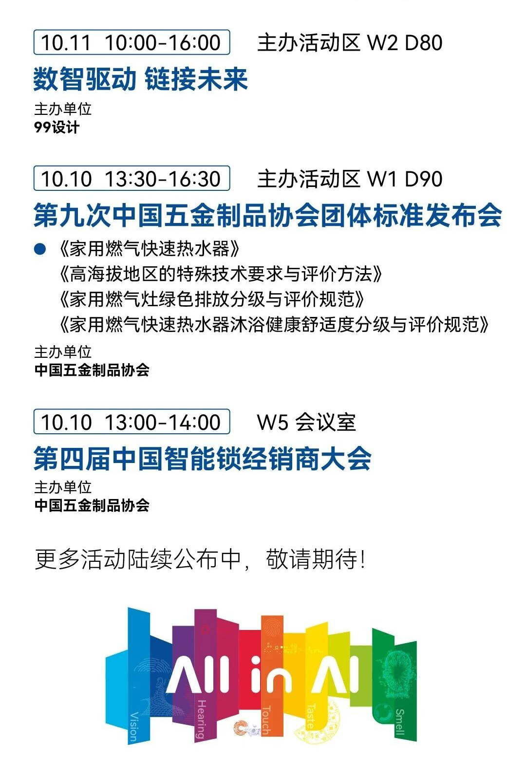 展会期间,多场高端会议与论坛将轮番登场,涵盖智能家电生态、显示技术、家装设计、团体标准、跨境出海、智能锁具发展等热点议题,为行业提供前沿洞察与合作机遇。以下是本次博览会的重点会议排期预告,欢迎提前规划行程,共赴智慧之约!