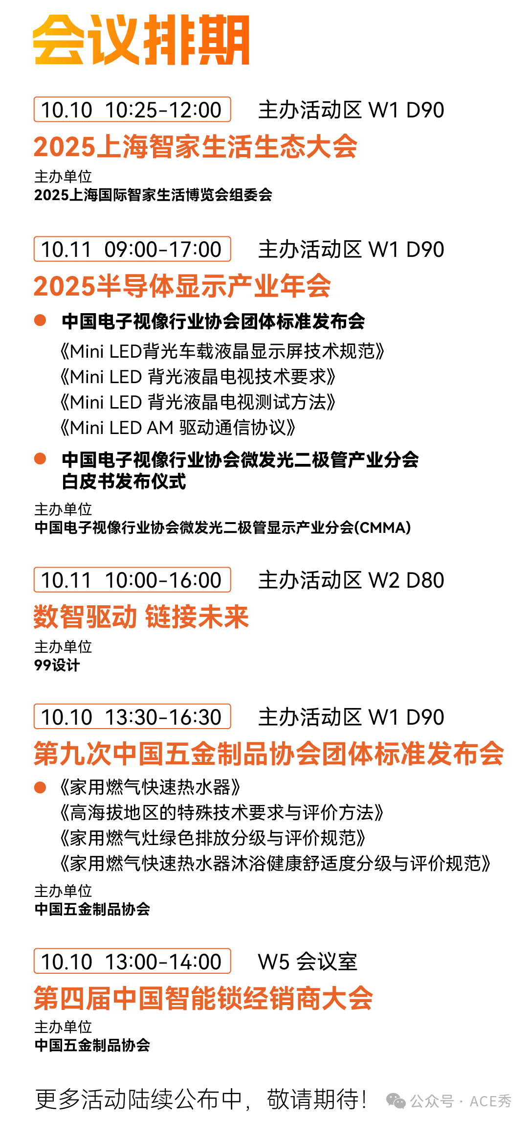 展会期间,多场高端会议与论坛将轮番登场,涵盖智能家电生态、显示技术、家装设计、团体标准、跨境出海、智能锁具发展等热点议题,为行业提供前沿洞察与合作机遇。